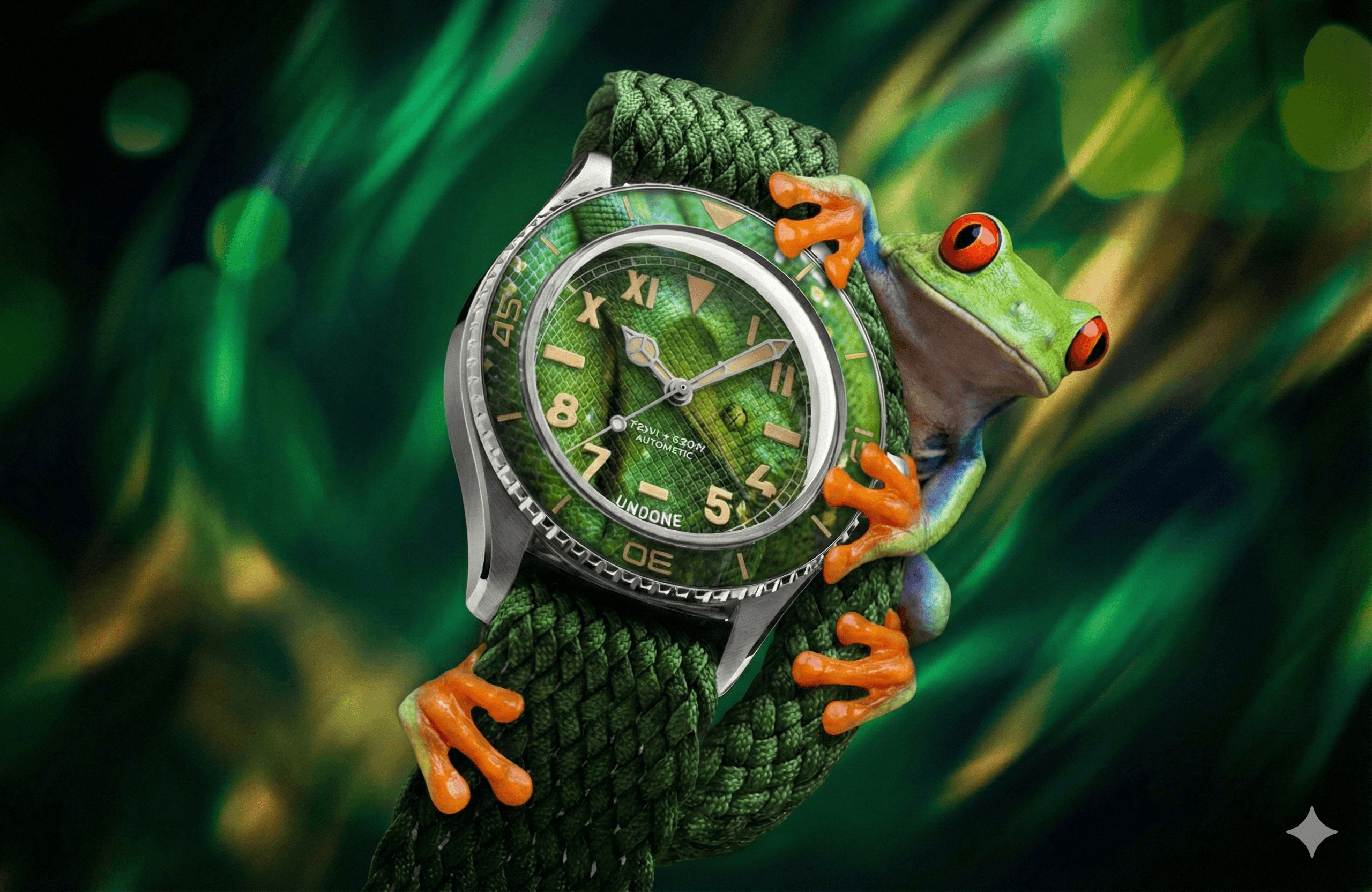 Macro imagery of the diamond dial texture married with imagery of green snake scales, woven around B-roll content of the rainforest and various exotic creatures. Paired together with a lively audio track that befit the wilderness imagery.