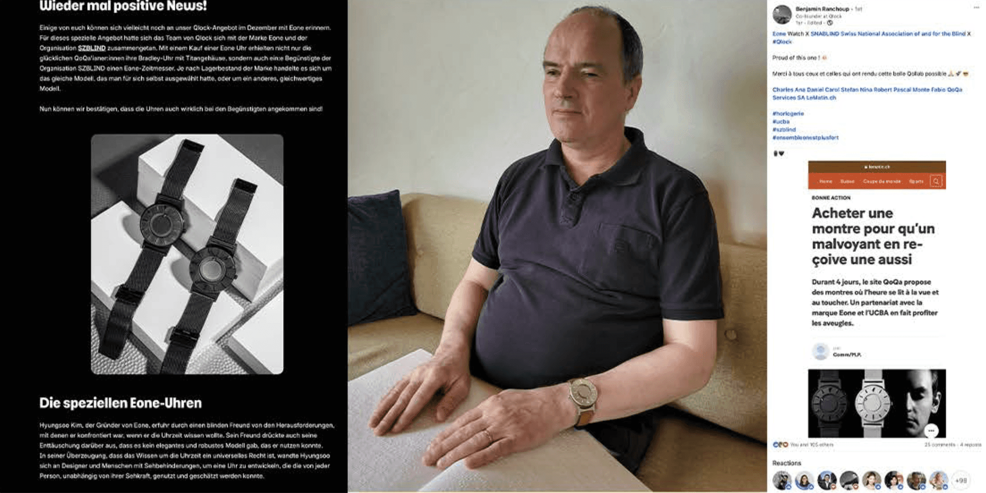 Across a 48 hour group-buy campaign with an initial sales target of 200 units, we agreed to match every sale with a value-in-kind donation of an Eone timepiece to largest deaf and deafblind association in Switzerland, SZBlind. The initial target was reached within 12 hours and the call was made to increase our quota to 400 units. 3 months later, Eone successfully delivered 400 units to SZBlind to be allocated to individuals in their community.