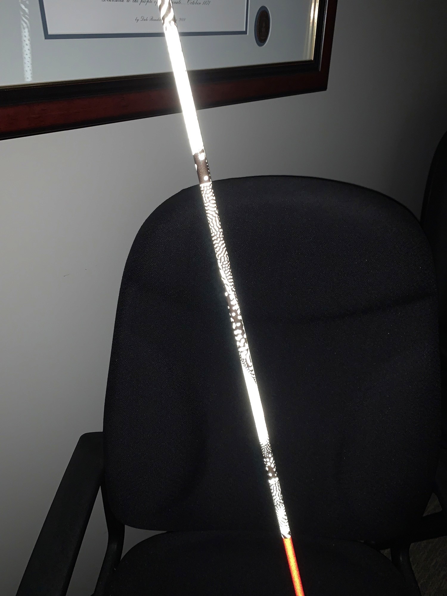 During the print production stages, Steve and I ran into product engineering issues which we overcame through reiterations of the printing and machine setup. Application of the wrap to an existing cane proved challenging in itself due to the diversity of canes. We opted to focus on John's cane preferences to keep the project lean.